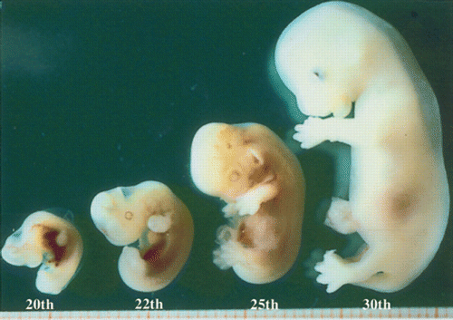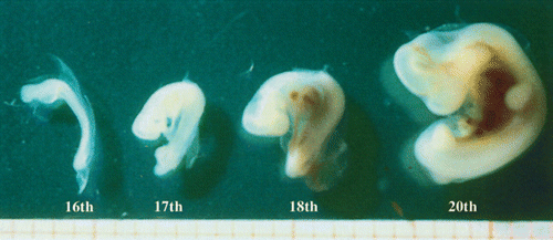 Cinco a seis días después de la fecundación, luego de migrar a través del oviducto, los embriones ingresan al útero e ingresan al mismo en estado de mórula compacta. Al octavo día el blastocisto tiene un diámetro de 500-600 mm y en el décimo día algunos han completado su expansión alcanzando un diámetro de 2300 mm.