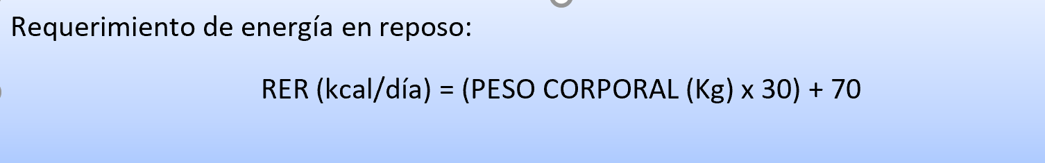 El RER (Requerimiento de Energía en Reposo) se calcula con una sencilla fórmula y nos dice la cantidad de Kcal que se requieren para mantenerse nutrido. En el caso de las hembras gestantes, este requerimiento se multiplica por dos. A partir de la semana 4 y hasta el momento del parto se deberá aumentar gradualmente la ración en un 25 a 50% ya que las necesidades energéticas de la gata aumentarán a medida que aumenta la deposición de tejidos durante la formación de los fetos. En la semana 6 a 9 de gestación, se deberán ofrecer numerosas raciones pequeñas debido a la reducción del espacio abdominal por el crecimiento de los fetos. La utilización de dietas formuladas específicamente para gatas gestantes o cachorros aportan proporciones adecuadas de hidratos de carbono, proteínas y grasas, con un mayor contenido energético, y con suplementos de vitaminas, ac. grasos esenciales, taurina y antioxidates, permite a las gatas comer menos y obtener la misma energía hasta el momento del parto. Durante la lactación estos requerimientos aumentan incluso más, pudiéndose multiplicar hasta por 6 el RER.